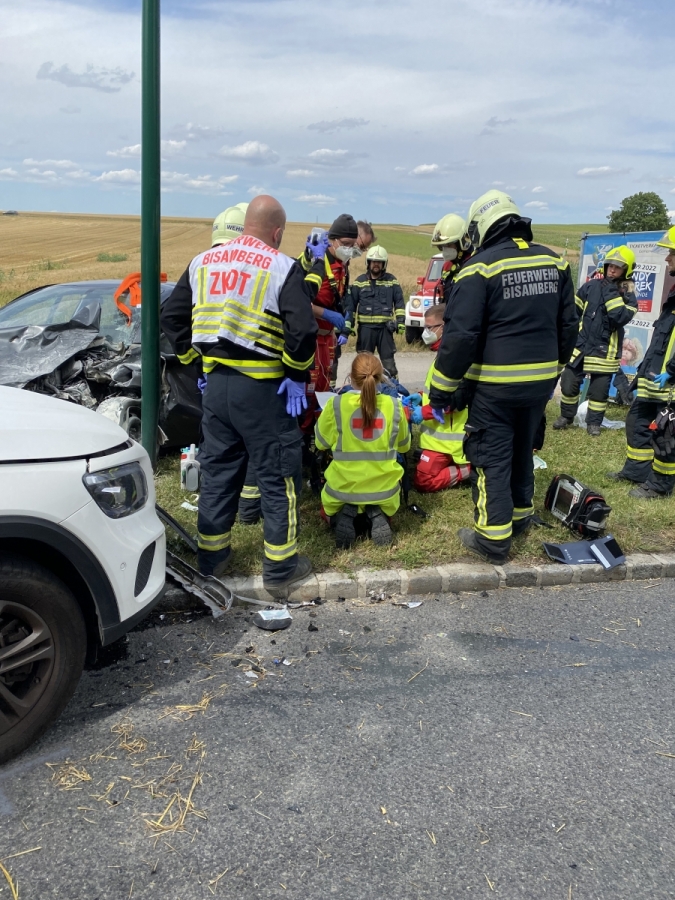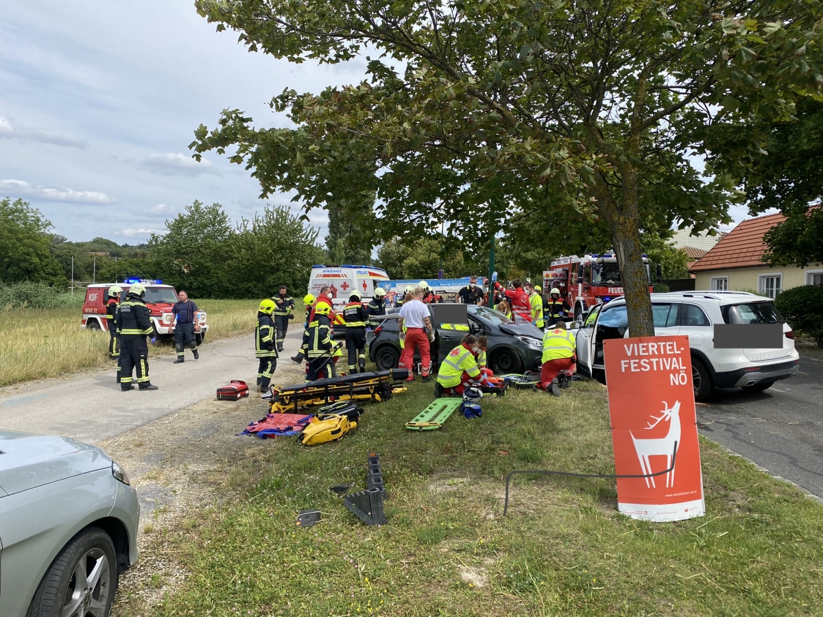 Das Rote Kreuz war mit dem Notarzt und einem First Responder Team bereits vor Ort. Von unserer Seite wurde der Brandschutz aufgebaut und die Fahrzeuge gesichert. In Absprache mit dem Rettungsteam, wurden die beiden Insassen des einen PKWs schonend befreit. Eine verletzte Person wurde mit dem Christophorus 9 Wien in ein Krankenhaus transportiert. Gemeinsam mit der FF Klein-Engersdorf wurden die zwei Fahrzeuge gesichert abgestellt.