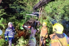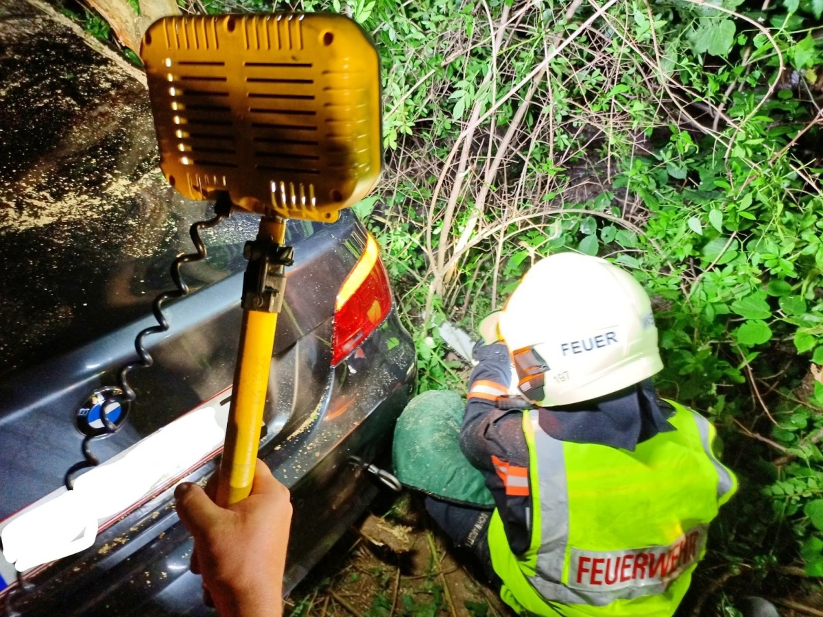 Zum vierten Einsatz wurden wir kurz vor 22:00 Uhr alarmiert. Aus unbekannter Ursache schlitterte ein PKW auf der Bergstraße über 10 Meter in den Wald. Auf Grund der Lage, wurde zur schonenden Bergung das „Wechselladefahrzeug Kran“ der Feuerwehr Korneuburg nachgefordert. Nachdem der Bewuchs in erforderlichem Ausmaß entfernt wurde, konnte das Fahrzeug schonend aus seiner misslichen Lage gehoben werden. Wir standen über 2 Stunden, mit 4 Fahrzeugen und 22 Mitgliedern im Einsatz.