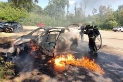Nach wenigen Minuten an der Einsatzstelle wurden wir von der Bezirksalarmzentrale Stockerau zu einen Paralleleinsatz, brennender PKW auf dem Parkplatz Gamshöhe, alarmiert. Das Kommandofahrzeug wurde aus dem laufenden Einsatz herausgelöst, das Hilfeleistungslöschfahrzeug 3 wurde mit der im Feuerwehrhaus verbliebenen Mannschaft zu dieser Einsatzstelle entsandt. Ebenfalls wurden gemäß Alarmplan die Feuerwehren Freiwillige Feuerwehr der Stadt Korneuburg und FF Klein Engersdorf alarmiert. Ein Atemschutztrupp des HLF 3 konnte den Brand mit einem Rohr rasch unter Kontrolle bringen. Da auch Kraftstoff brennend austrat, wurde zusätzlich ein Schaumrohr vorgenommen. Insgesamt standen 4 Fahrzeuge mit 20 Mitgliedern rund 2 Stunden im Einsatz.