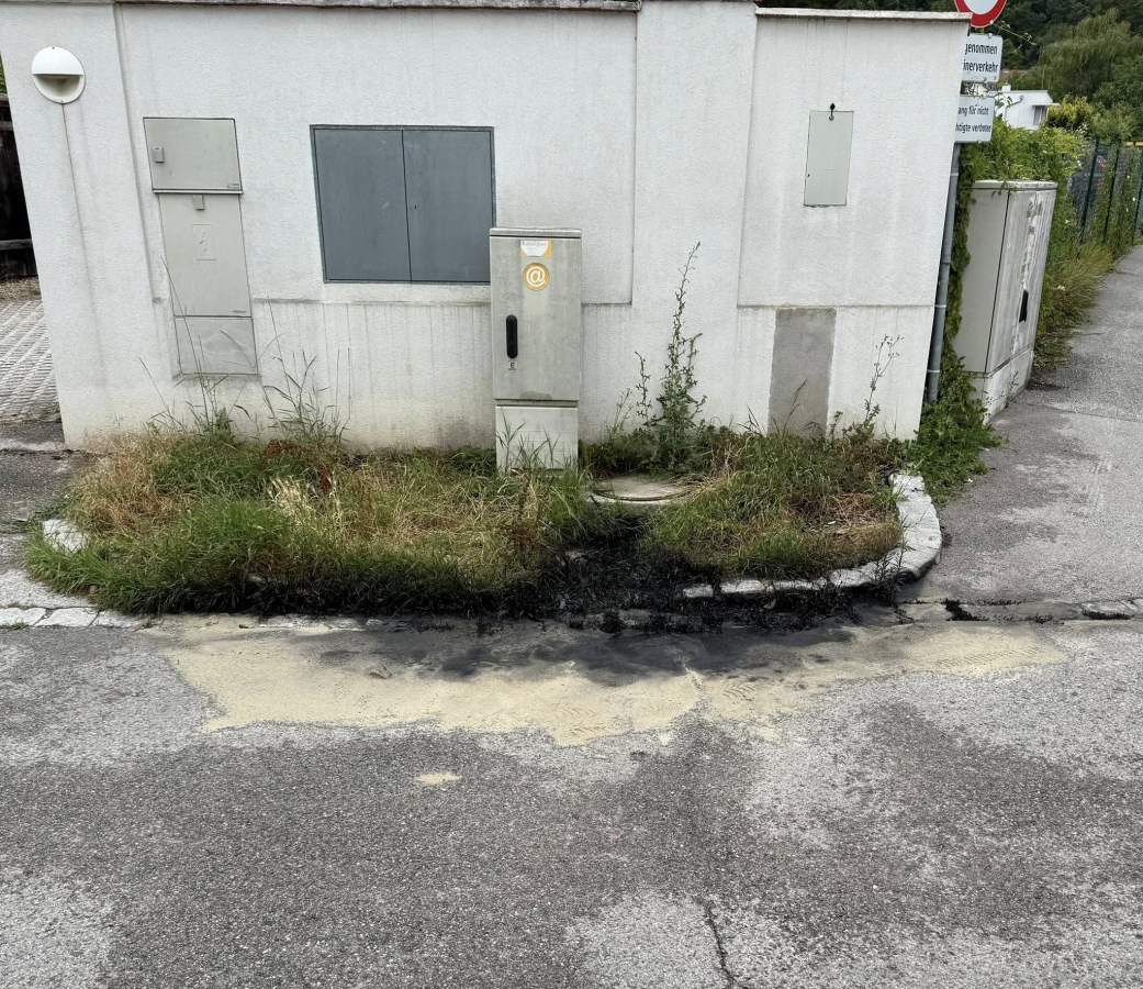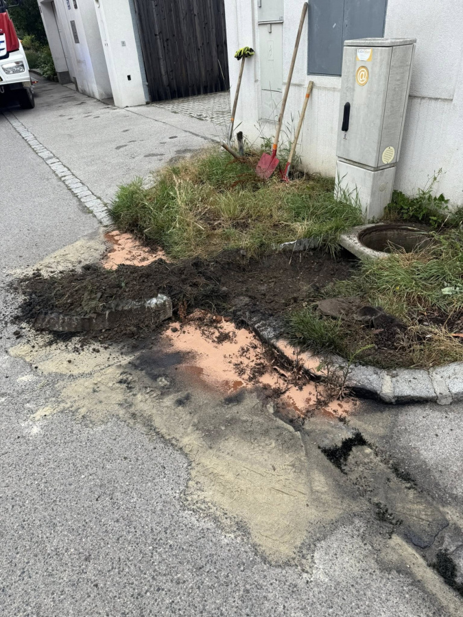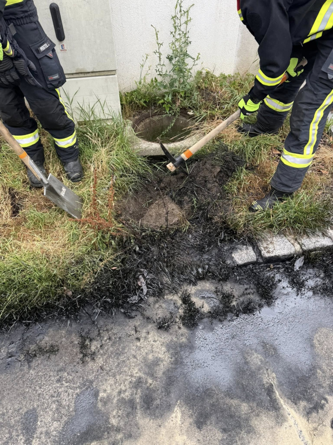 Nach Rücksprache mit der Wasserrechtsbehörde haben wir das kontaminierte Erdreich abgegraben und das Öl im Sickerschacht abgeschöpft.