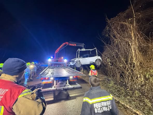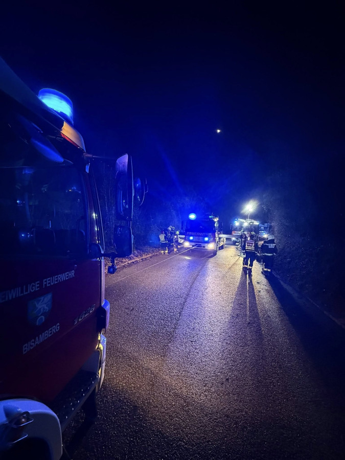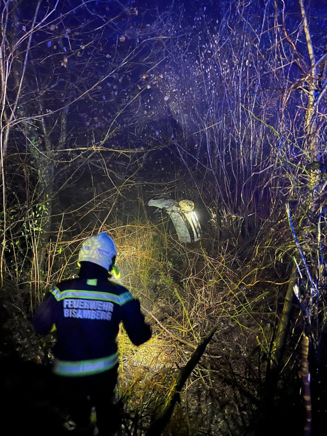 In der Nacht zum 11. Dezember gegen 23Uhr, kam ein PKW aus unbekannter Ursache auf der Bergstraße von der Fahrbahn ab und kam auf der Seite liegend im angrenzenden steilen Teil des Waldes zum Liegen.